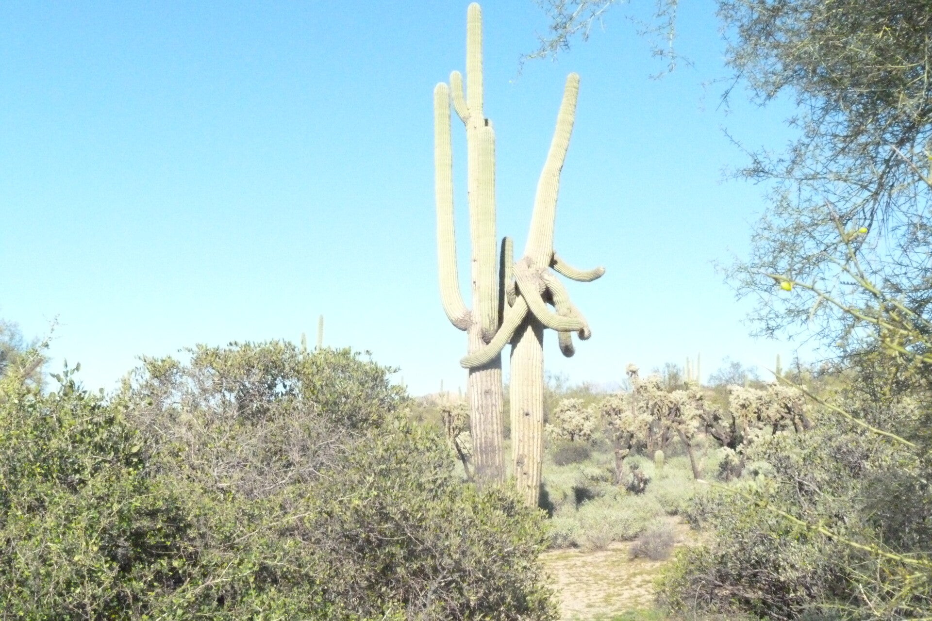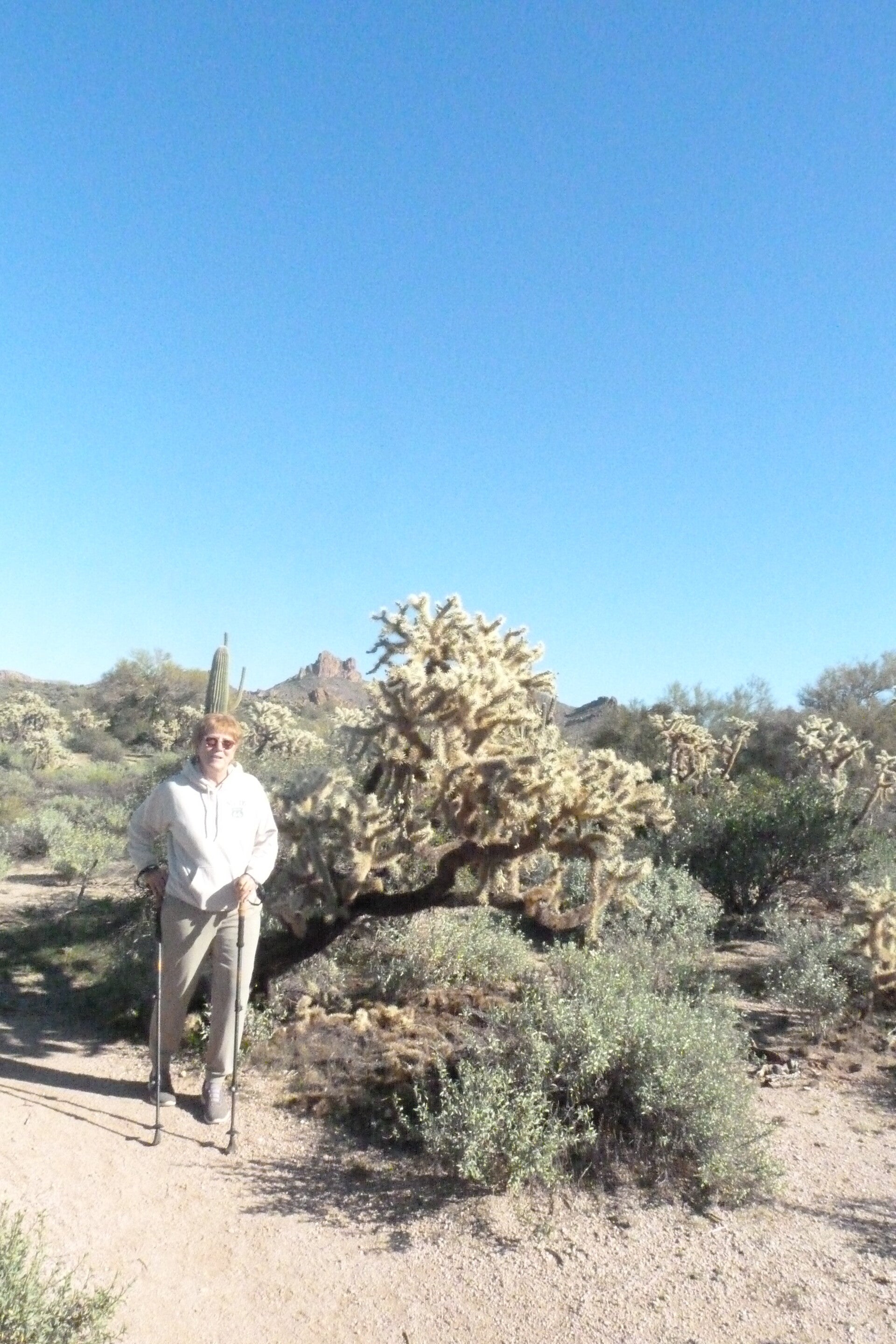 even these Jumping cholla grow huge. ken went to kick a loose piece off to the side of the path and it just grabbed onto his shoe, just stuck there.