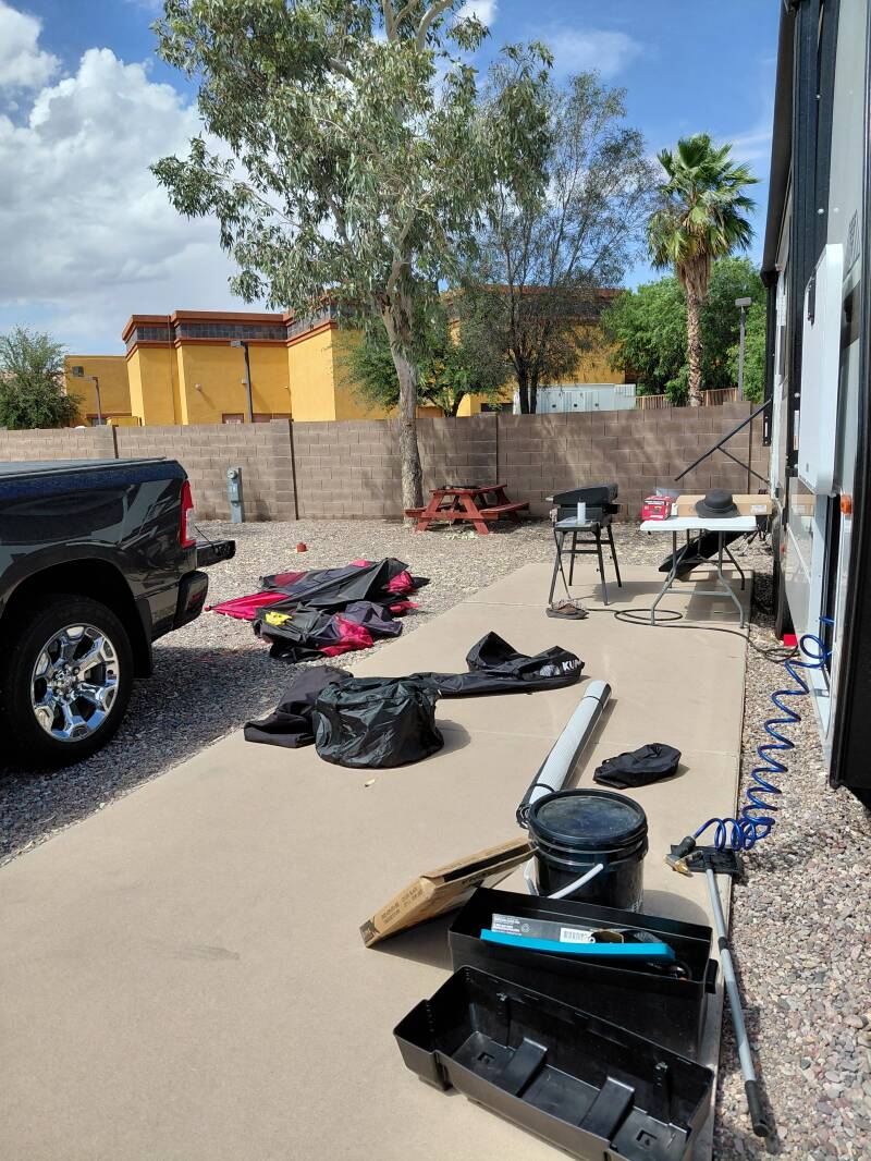 Took a little time off from packing to cool off (although Ken liked the hot tub) and visit friends before we drove away